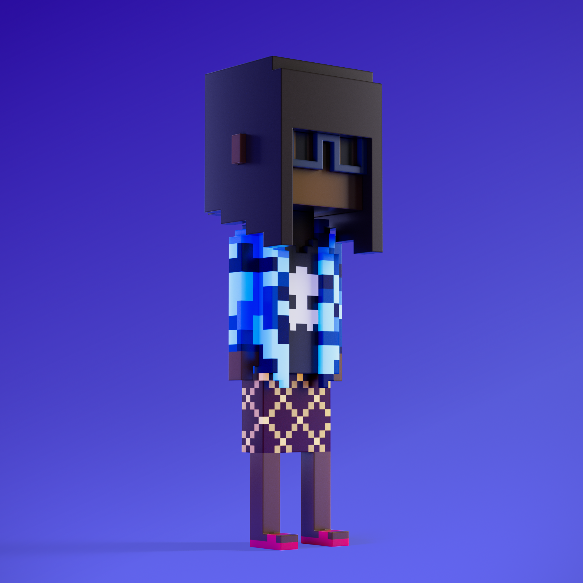 Meebits are 20,000 unique 3D voxel characters created by a custom generative algorithm.