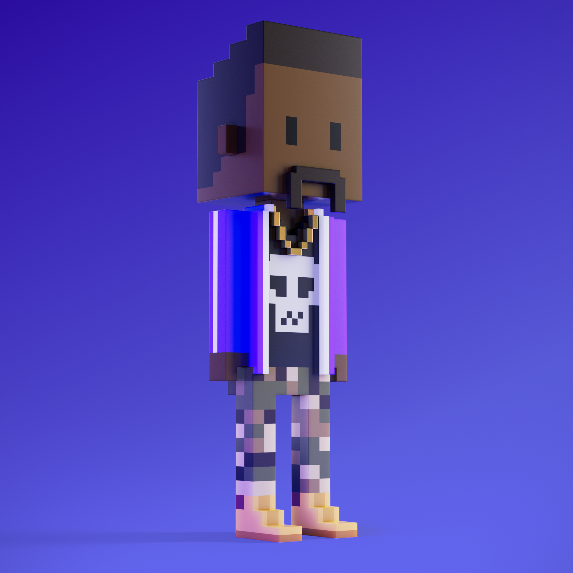 Meebits are 20,000 unique 3D voxel characters created by a custom generative algorithm.