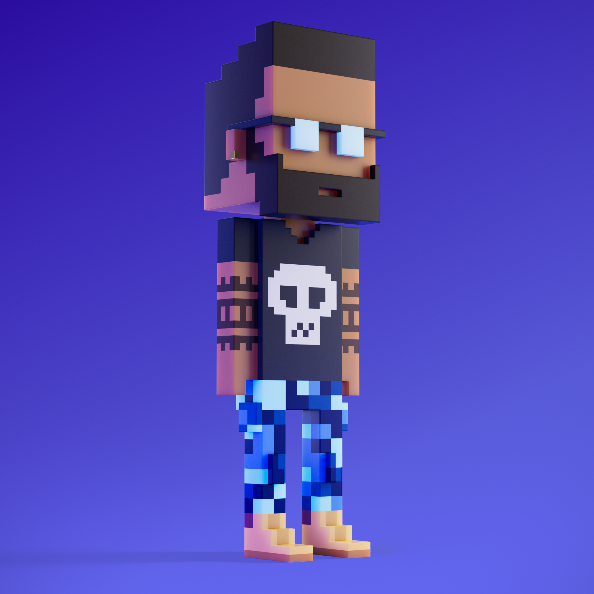 Meebits are 20,000 unique 3D voxel characters created by a custom generative algorithm.