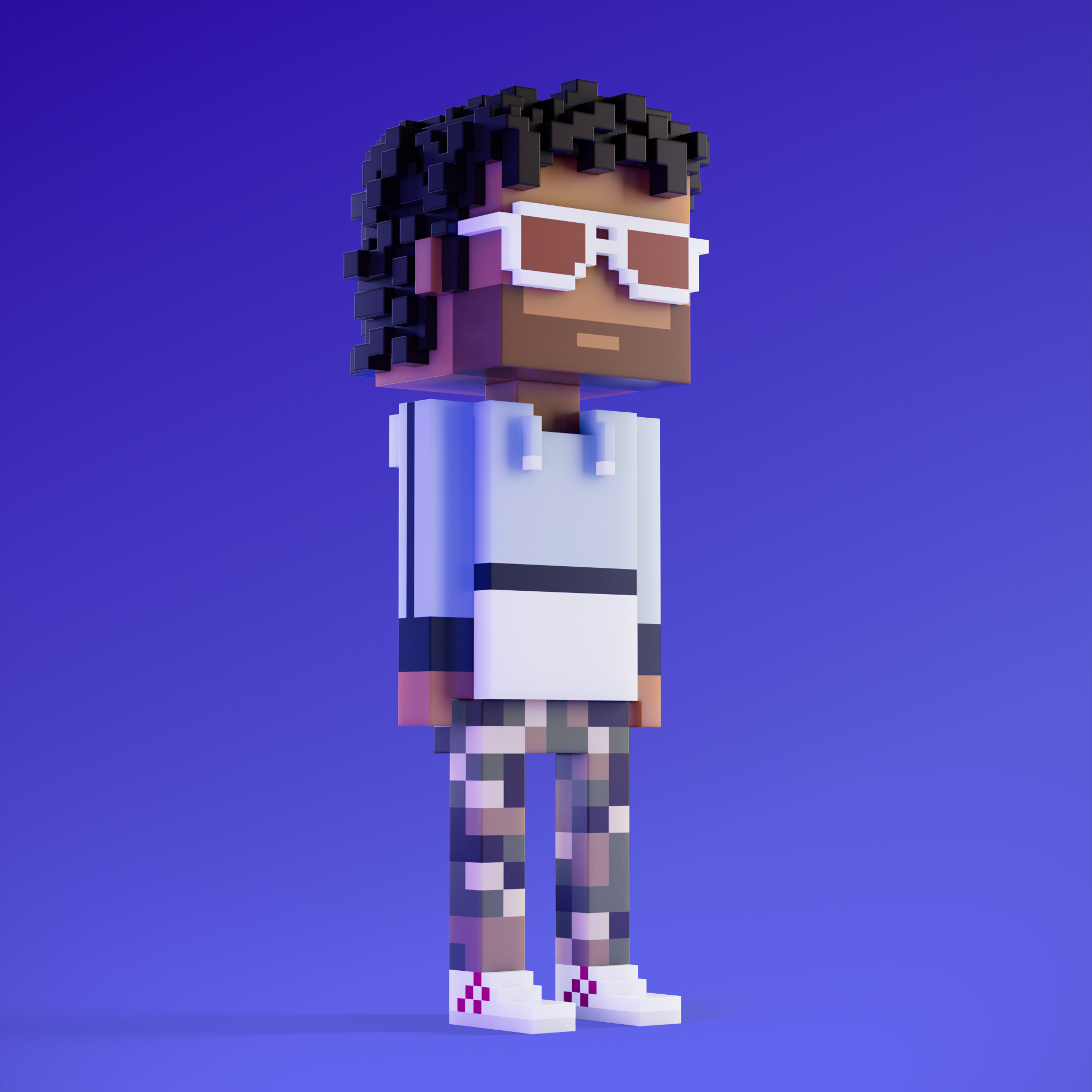 Meebits are 20,000 unique 3D voxel characters created by a custom generative algorithm.