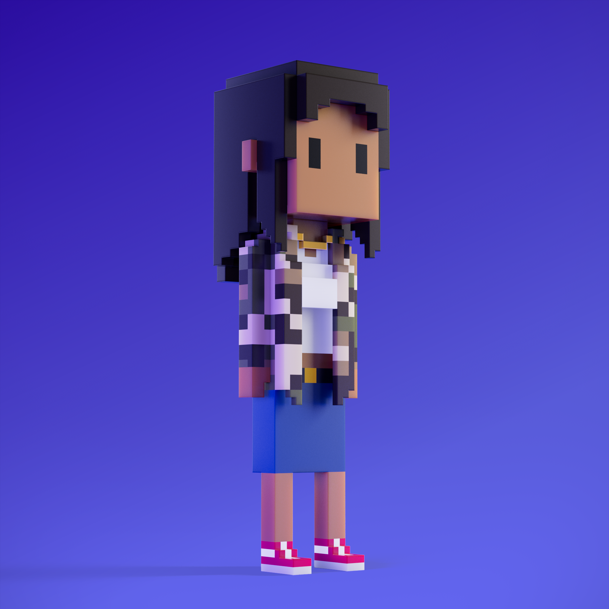 Meebits are 20,000 unique 3D voxel characters created by a custom generative algorithm.