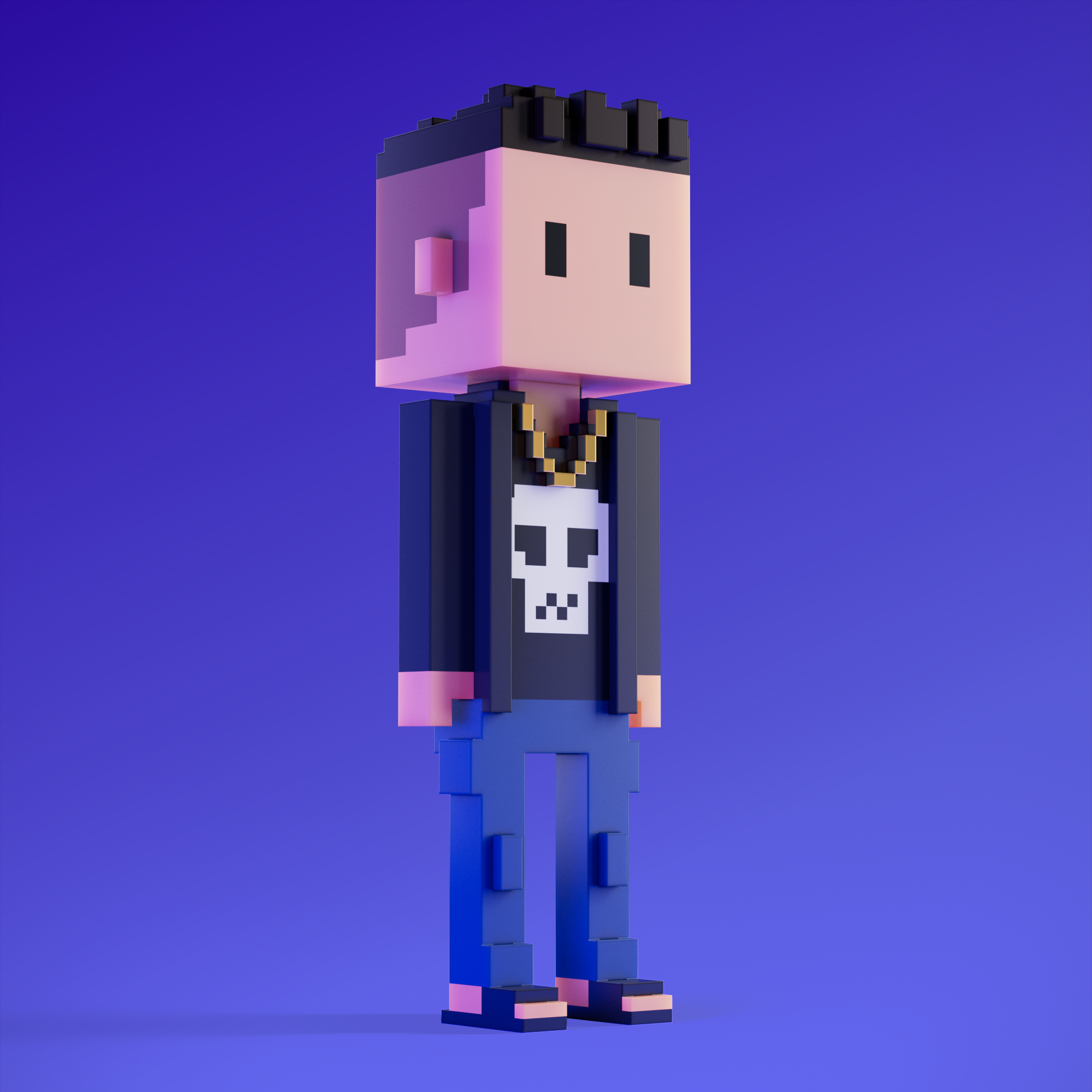 Meebits are 20,000 unique 3D voxel characters created by a custom generative algorithm.