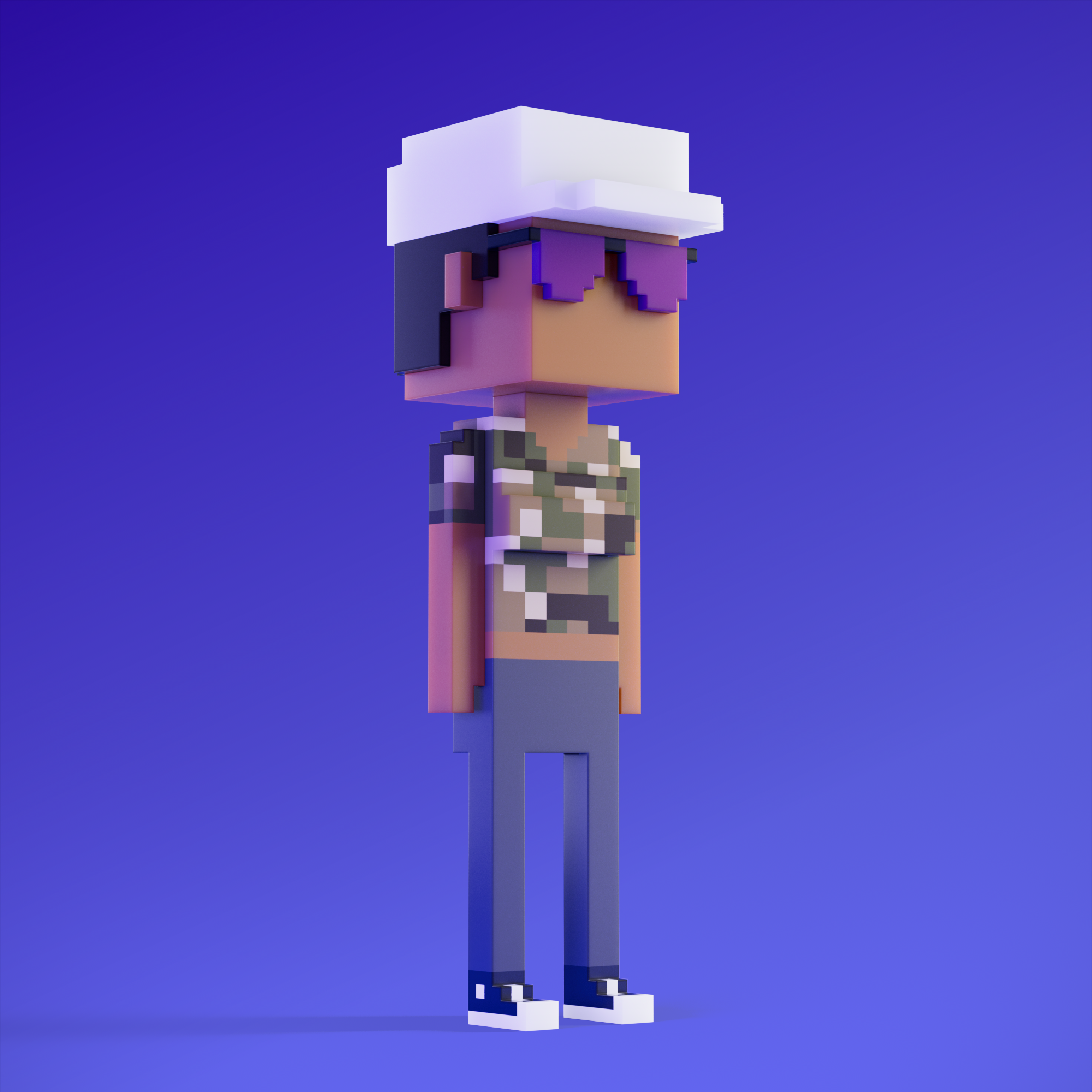 Meebits are 20,000 unique 3D voxel characters created by a custom generative algorithm.