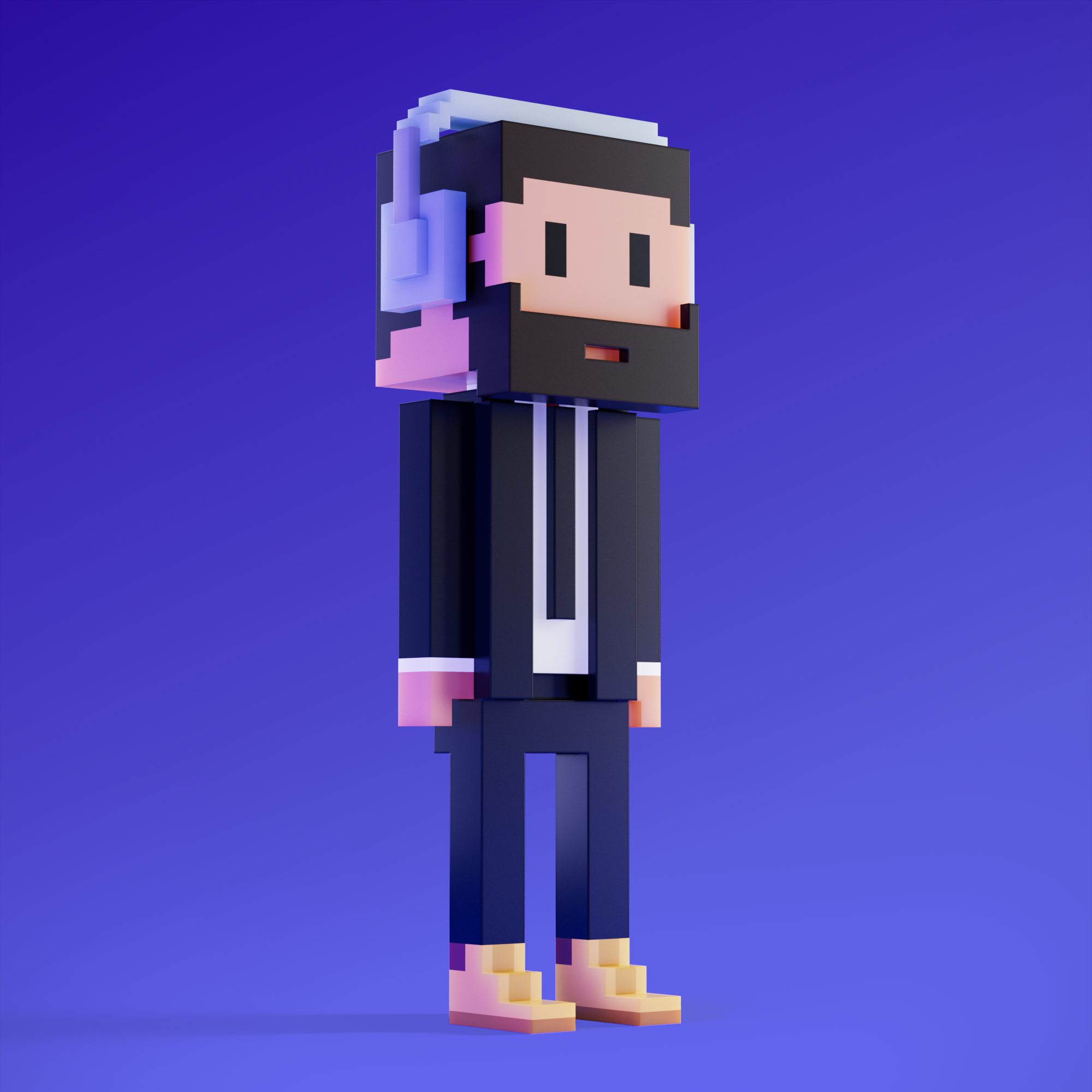 Meebits are 20,000 unique 3D voxel characters created by a custom generative algorithm.