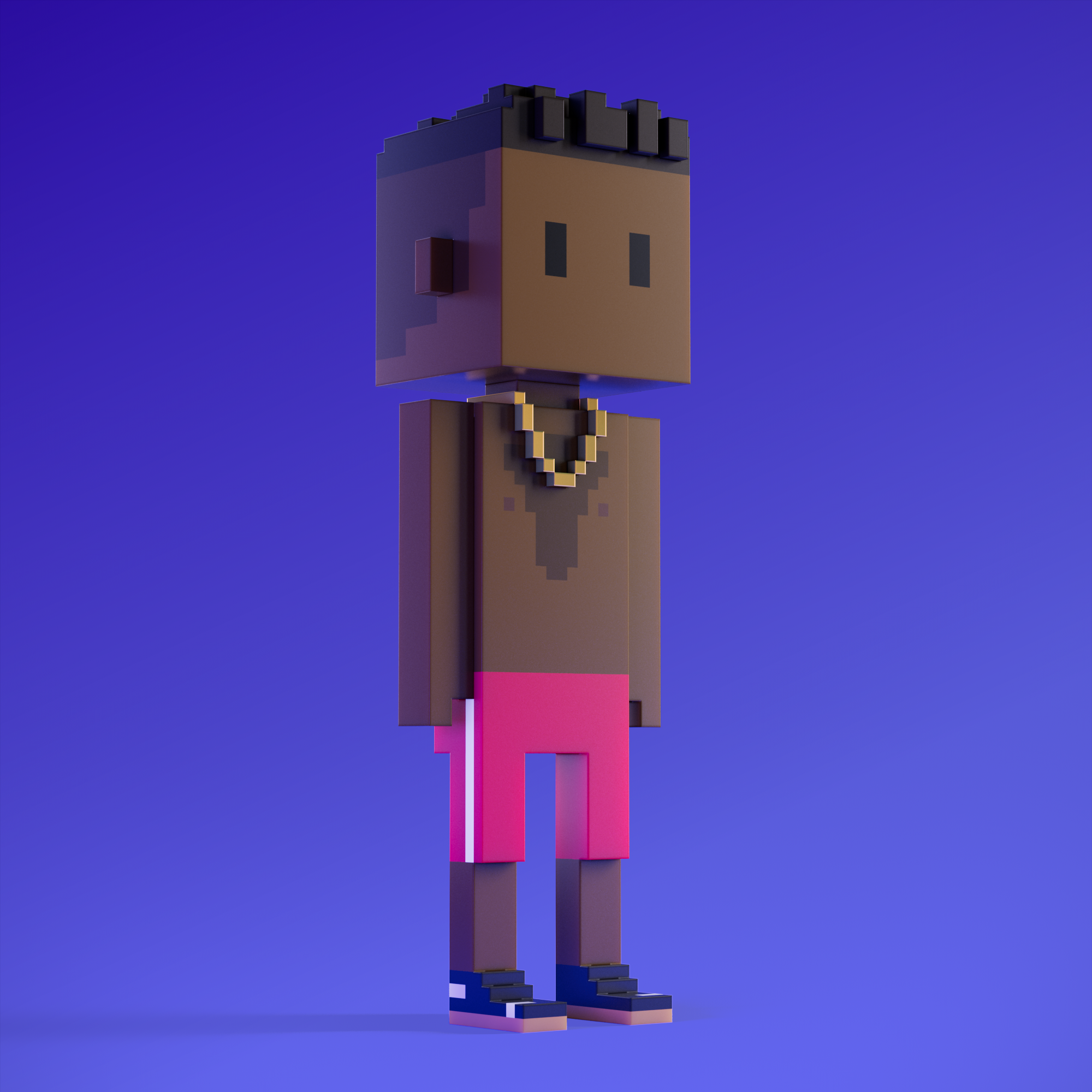 Meebits are 20,000 unique 3D voxel characters created by a custom generative algorithm.