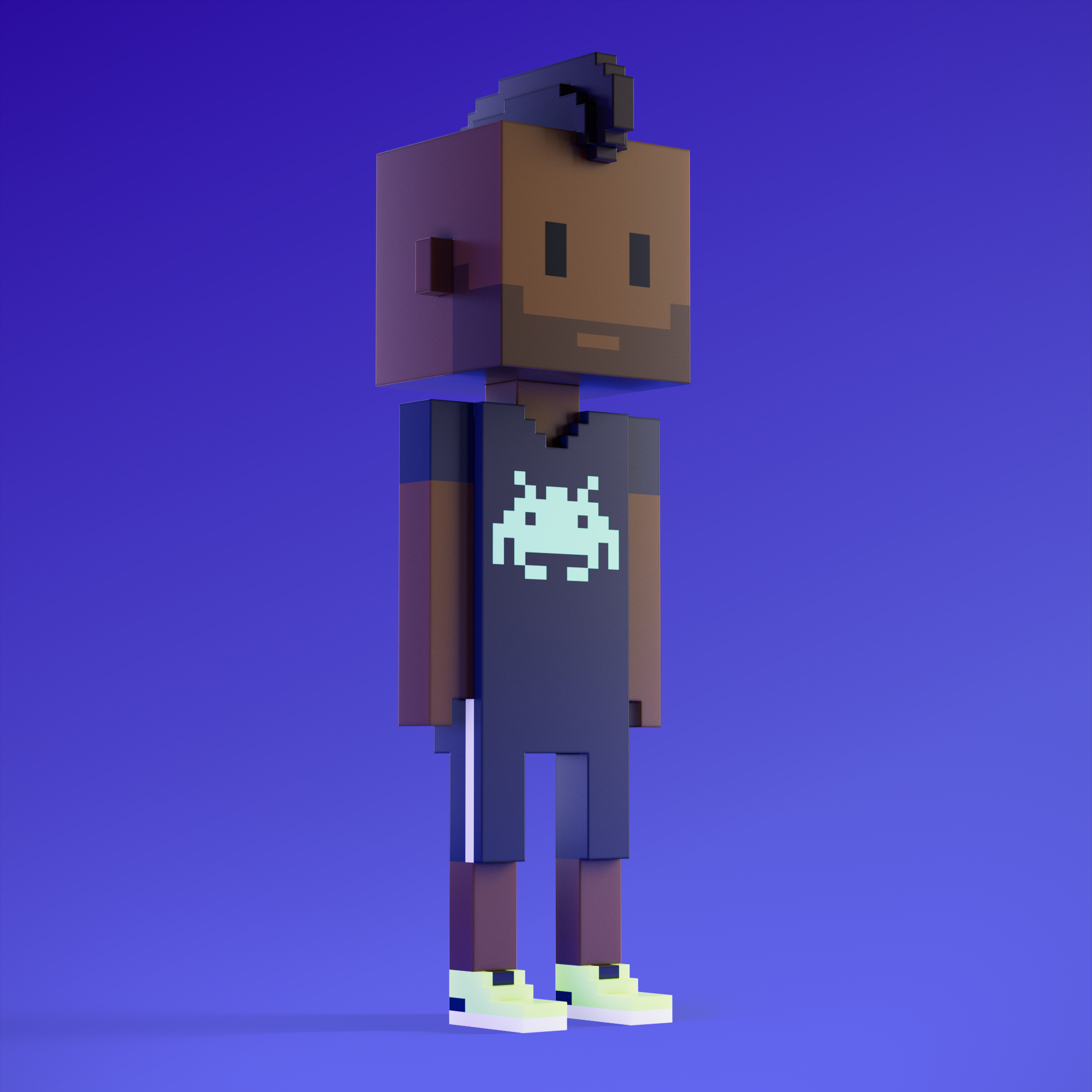 Meebits are 20,000 unique 3D voxel characters created by a custom generative algorithm.
