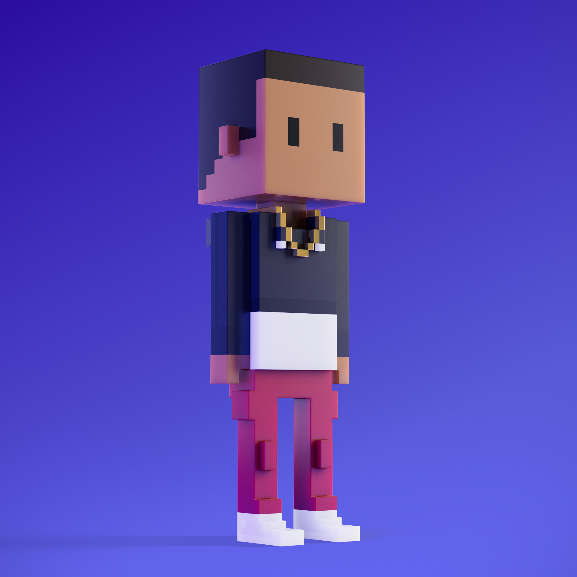 Meebits are 20,000 unique 3D voxel characters created by a custom generative algorithm.