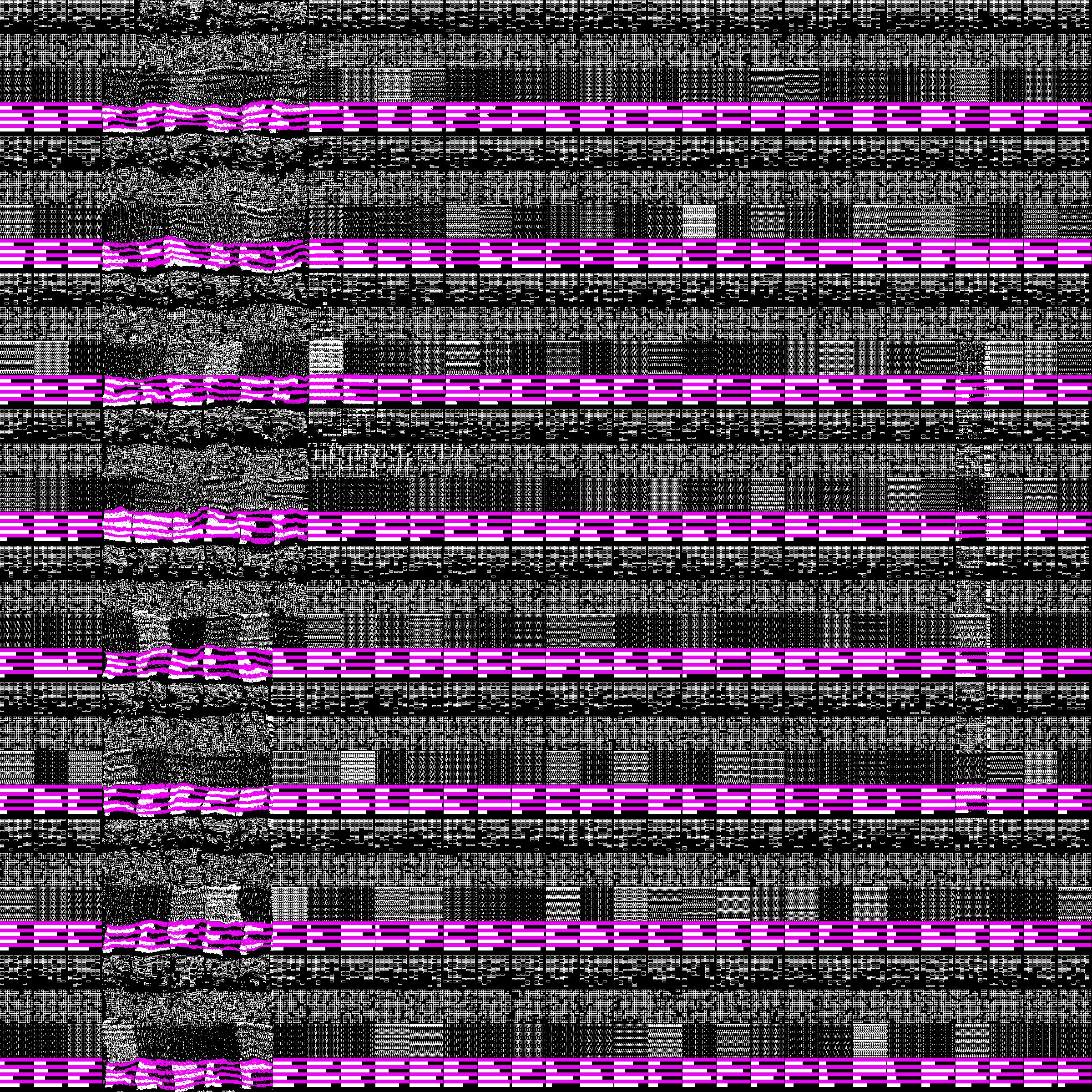 An initial image with variable structures and patterns is rendered and subsequently loaded into the frame buffer. A fragment shader is used to apply a set of animation algorithms that make the pixel move and a set of reset algorithms that constantly try to recreate the initial image. The final animation happens in selected containers and is always a combination of two algorithms, one from each set. By regularly animating and partially resetting the pixels, a wide range of movement patterns appear.
