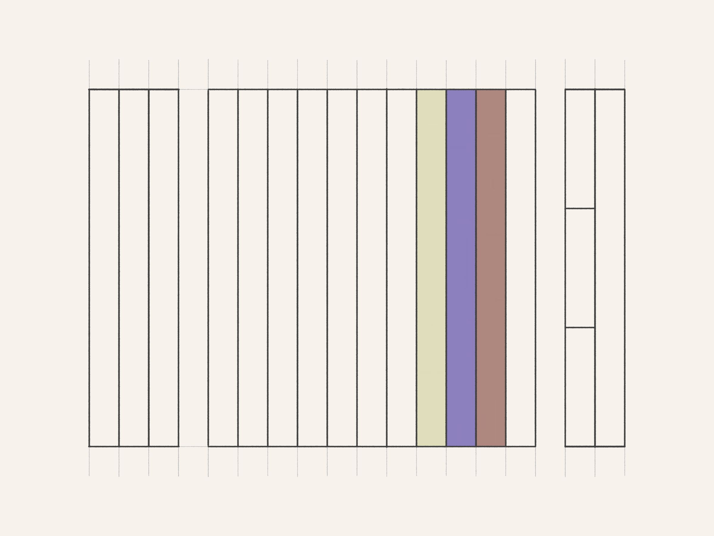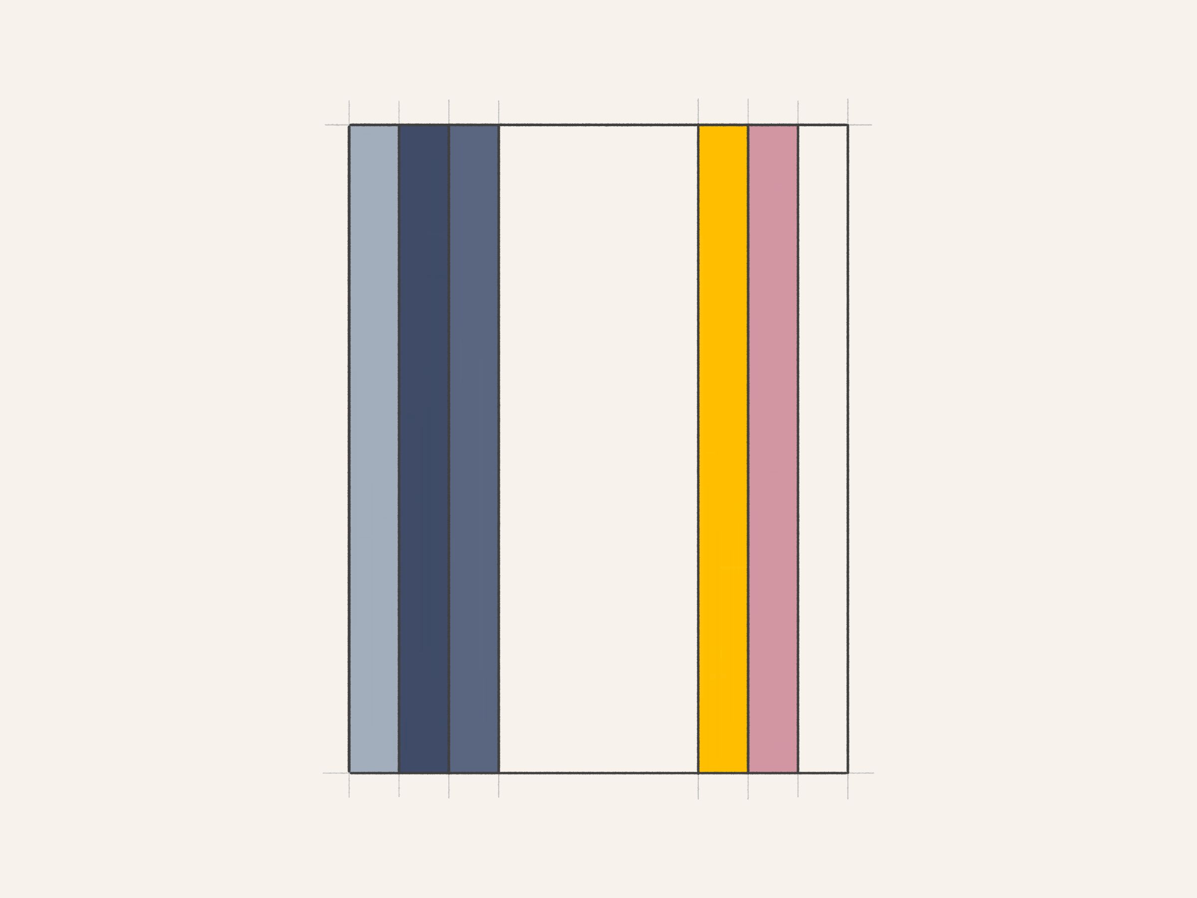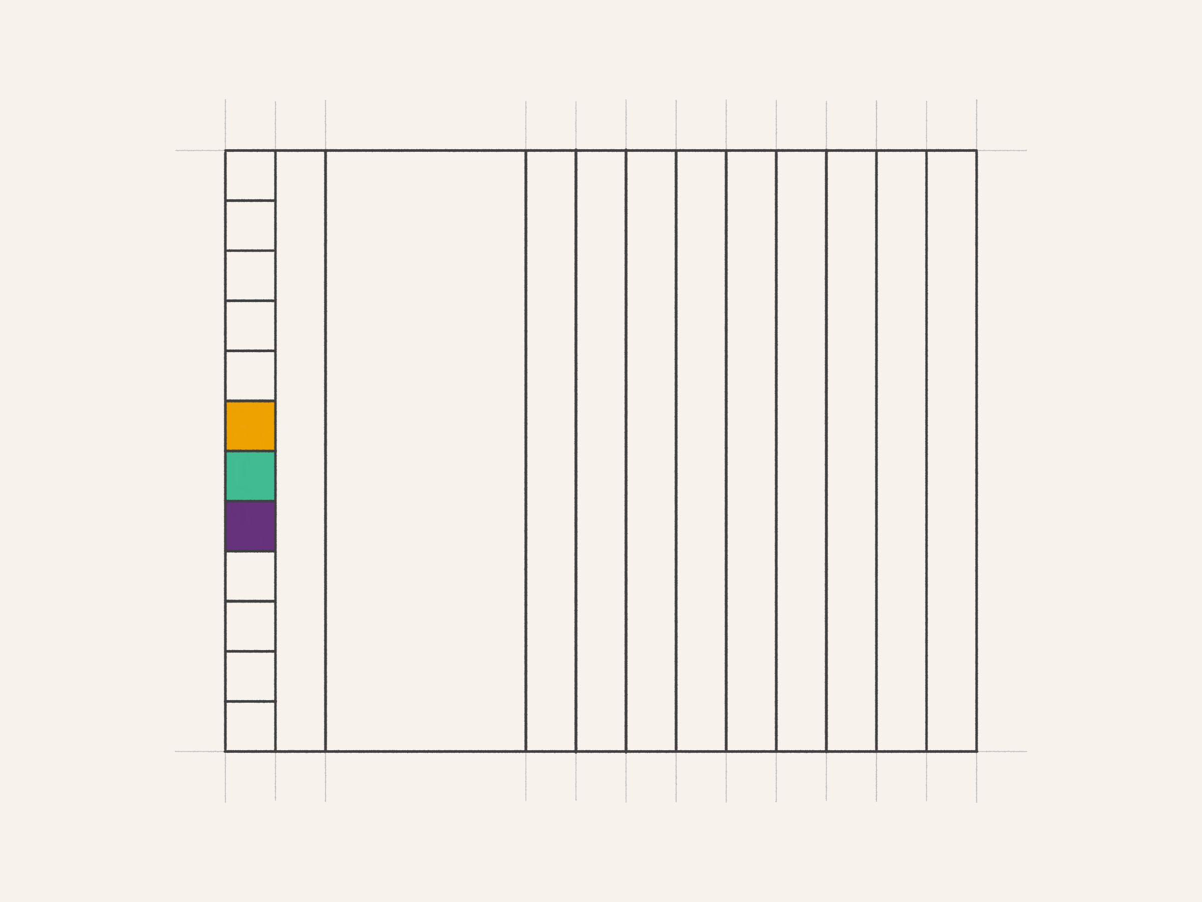Drawings for a Monument is a generative series exploring the development of a minimalist monument to Art Blocks. Each drawing pays tribute to a different project from the Curated collection, examining its color expression within a linear framework. The algorithm translates the chromatic identity of each Curated project into hand-drawn geometric studies with pencil guidelines, painted rectangles, and black outlines.
