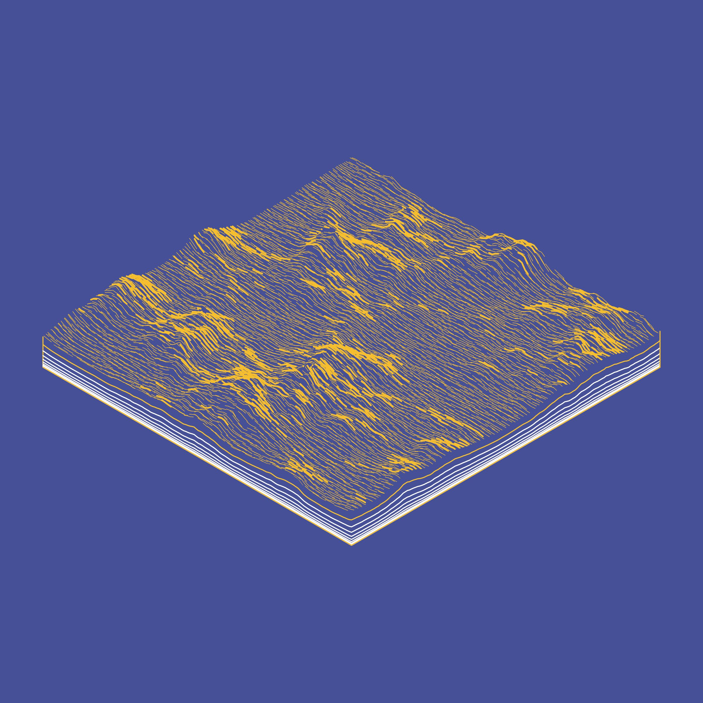 Project Description: A generative algorithm that draws the impression of a landscape from a multitude of possibilities. The unique seed from each token drives the parametric assortment of lines, colors, and forms into a constructed composition.